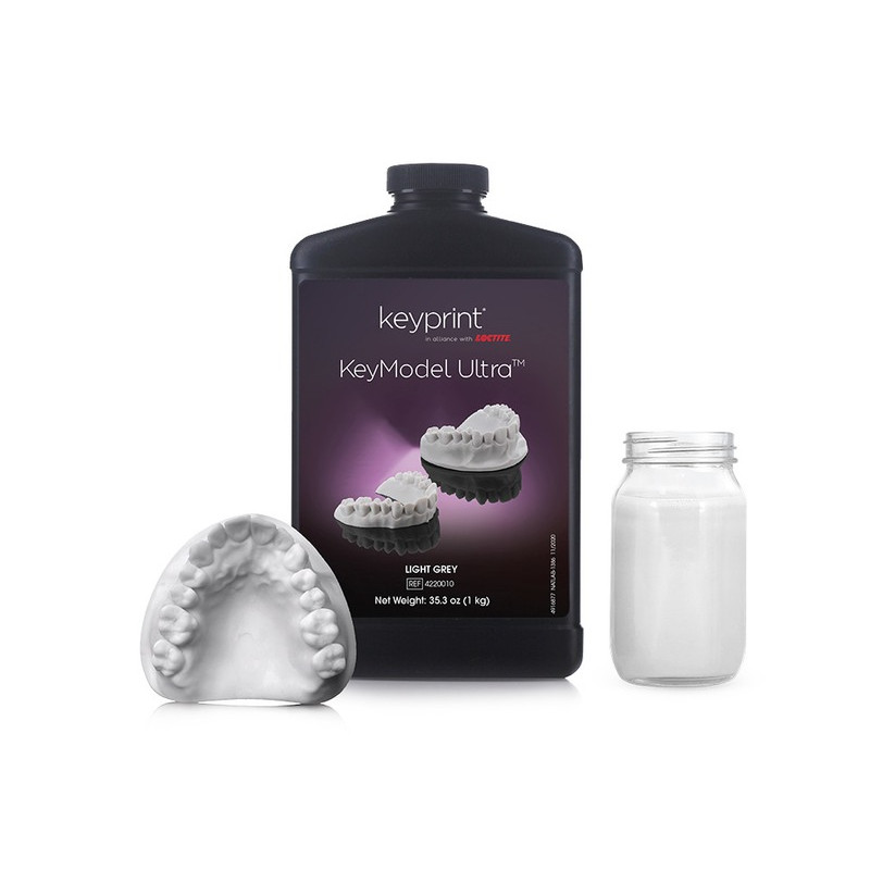Keystone KeyModel Ultra è una resina da stampa per la produzione di modelli ortodontici. Grazie alla viscosità molto bassa di 500 – 600 cP è in grado di stampare molto velocemente. I modelli sono generalmente adatti per la stampa di modelli ortodontici con una risoluzione di 100 micron. Il KeyModel ultra è disponibile in un colore avorio (colore Vanilla) e grigio chiaro.